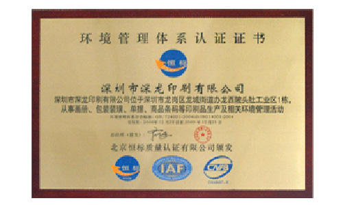 榮譽資質-深圳市深龍印刷有限公司